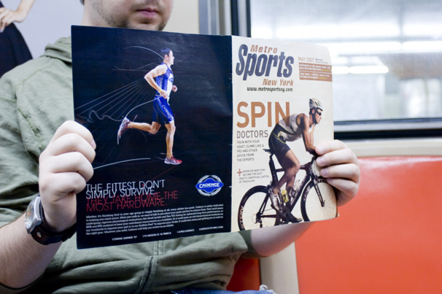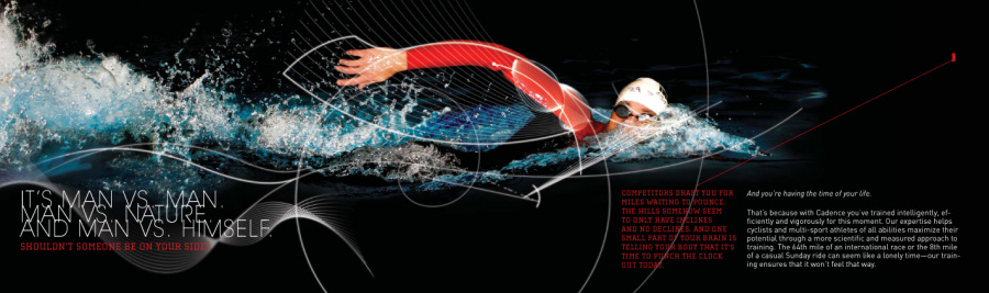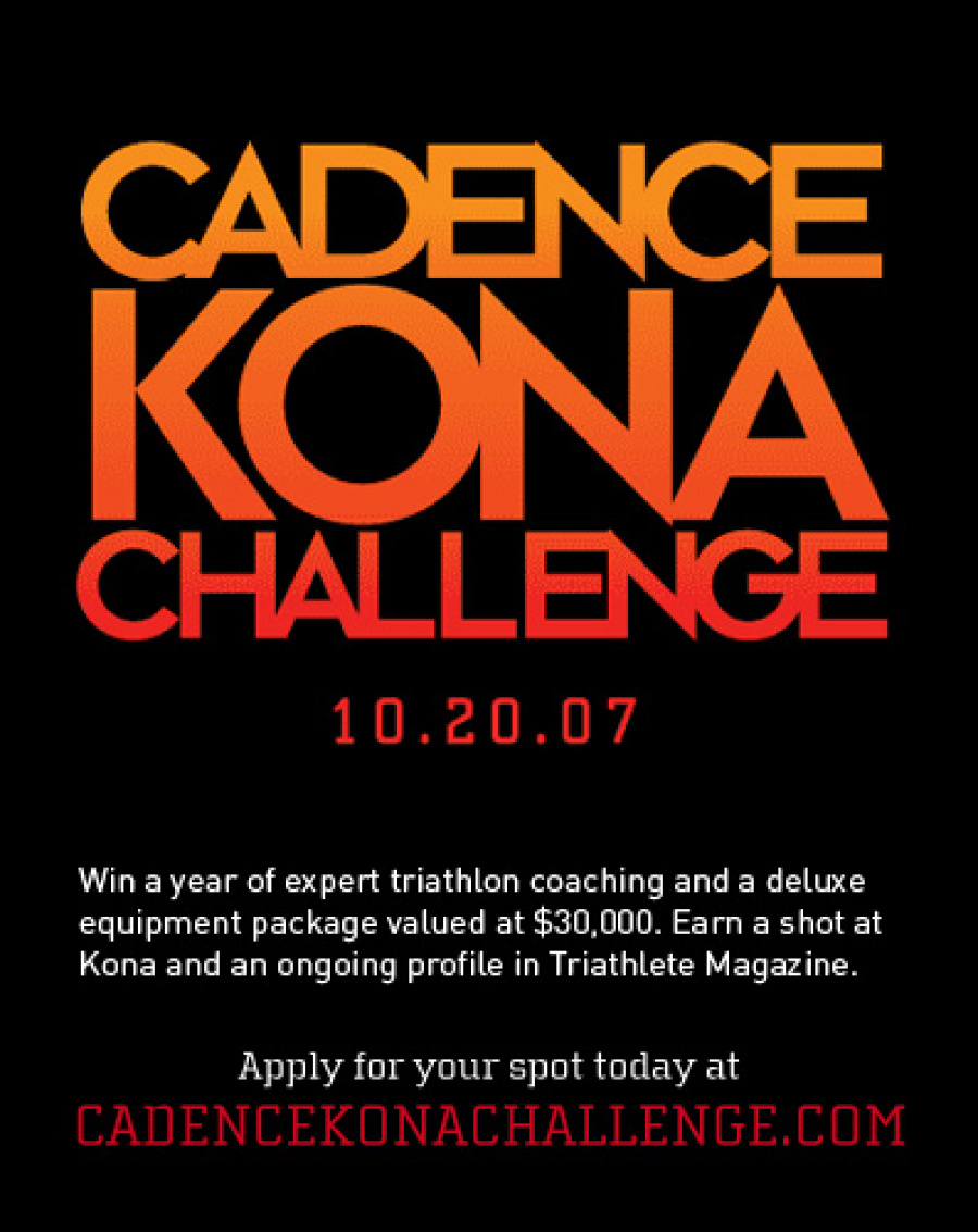 Beyond the typical ad campaign work (print, web, posters, sprinter van, etc), Cadence was looking to celebrate the opening of a Tribecca location. So we thought, since they had the testing facilities for running, biking and swimming, what better way to show off their services, than hosting an actual, in-store triathlon? Alongside a partnership with Triathlete magazine, a contest was formed. The winner was to receive a full year of training by Cadence, equipment, and a chance to run in Kona, all the while being documented by Triathlete magazine. Thousands entered. 100 entrants were carefully selected, and over a 2 day competition in the Tribecca location, 100 became 10 became 2.
