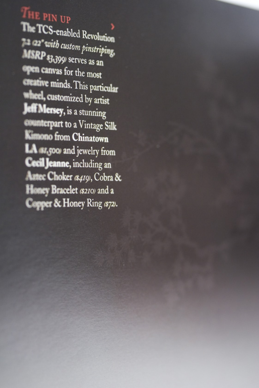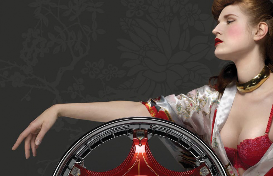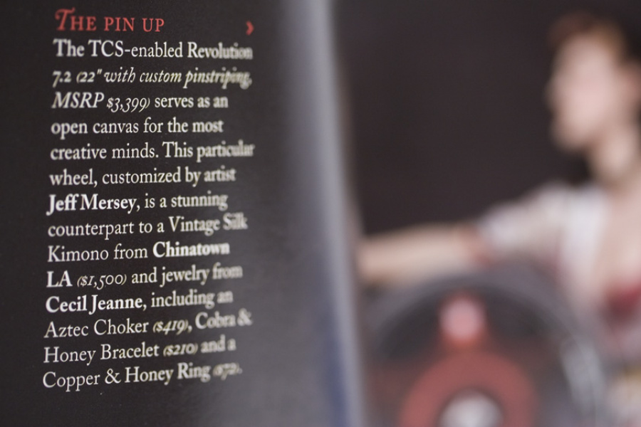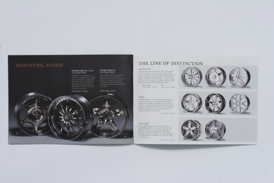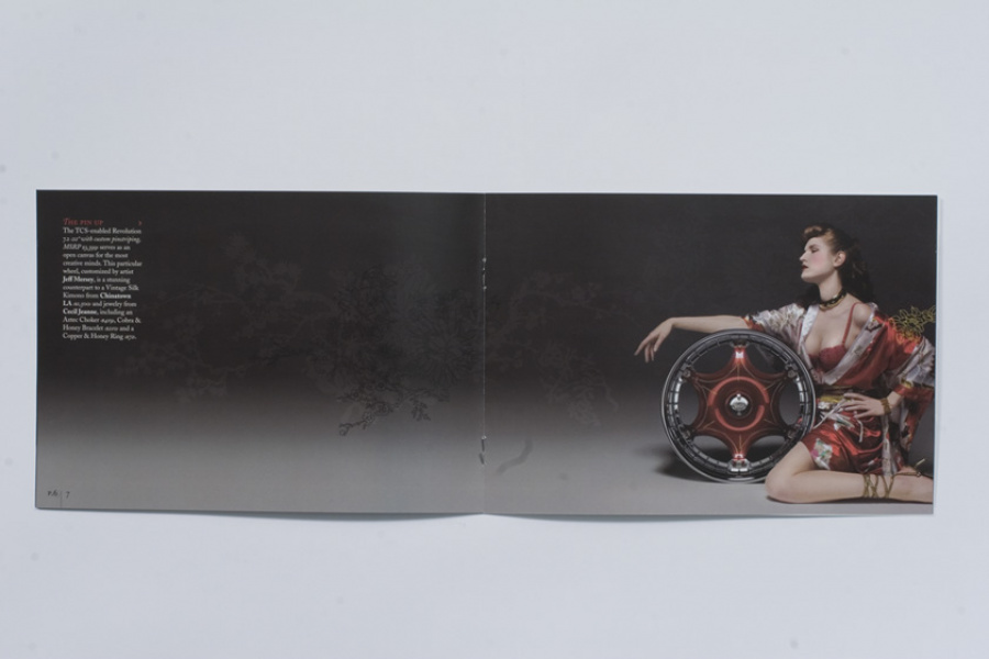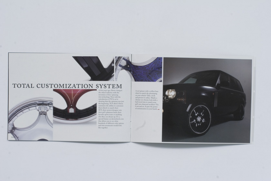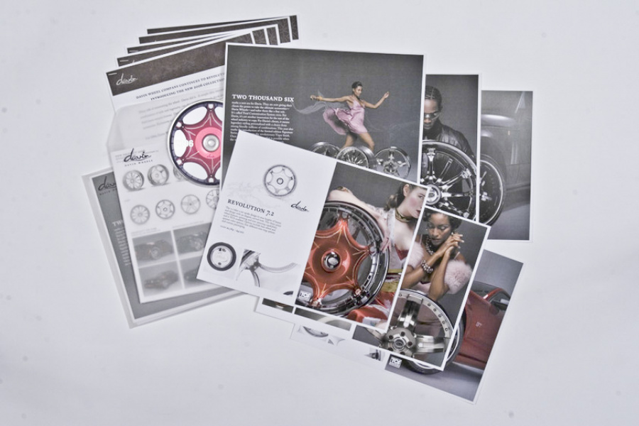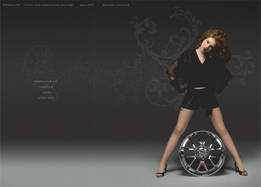 Couture for the highway versus the runway. Today, Davin Wheels are considered the ultimate personal statement for your luxury automobile. But in 2001, the company came to 160over90 with little more than a business plan and an innovation: the spinning rim. In a market dominated by bikini babes draped around exhaust manifolds, we took the high road, elevating Davin to the category equivalent of Bentley, Cartier, or Vuitton. Media hits and sales skyrocketed, garnering write-ups in Maxim, Time, and GQ while becoming the de rigeur accessory for celebrities like Nelly, Martin Lawrence, and Shawquille O’Neal. Like any of the top fashion houses, Davin introduces an entirely new line once a year, prompting an annual brand overhaul. In 2006 Davin released the Total Customization System, giving clients the ability to match their wheels to anything from their jewelry to their eye color. To capture Davin as the ultimate accessory for you and your vehicle, the agency hired renowned French fashion photographer Bruno Bisang to help launch Davin Quarterly, a magalog publication targeted to Davin enthusiasts worldwide. Davin’s customization option launched with immediate success, and the resulting campaign helped sell out their limited edition Signature Series mere weeks after its debut.
