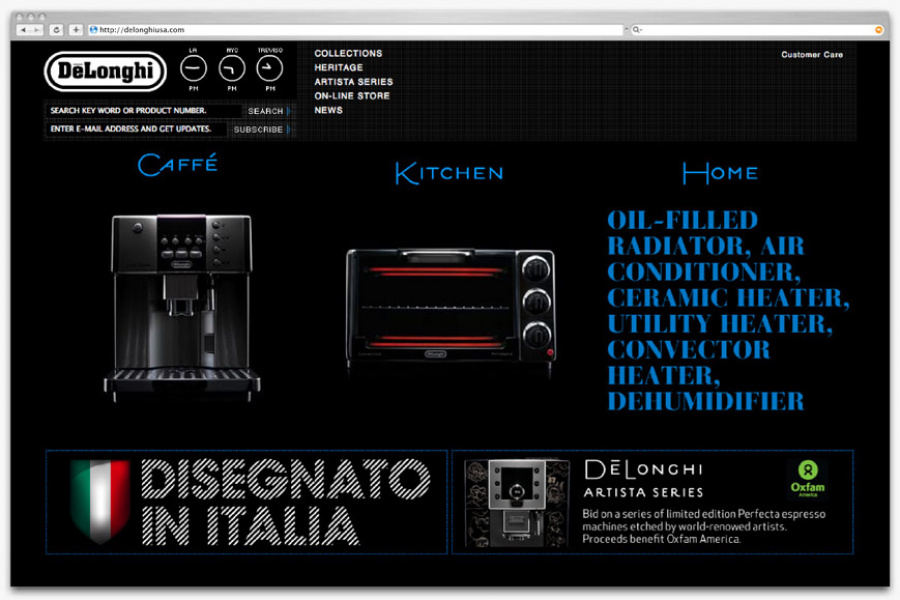 Headquartered in Treviso, Italy, De’Longhi has been manufacturing well-designed home appliances for over a century. In-depth research led 160over90 to uncover the five pillars of the brand: quality, expert manufacturing, innovative features, Italian heritage, and stylish design. We re-established De’Longhi’s position across 50 countries in the competitive home appliance market with a drastically different brand, featuring dramatic product photography and sentiments of the actual Italian designers, which connected the products to their design.