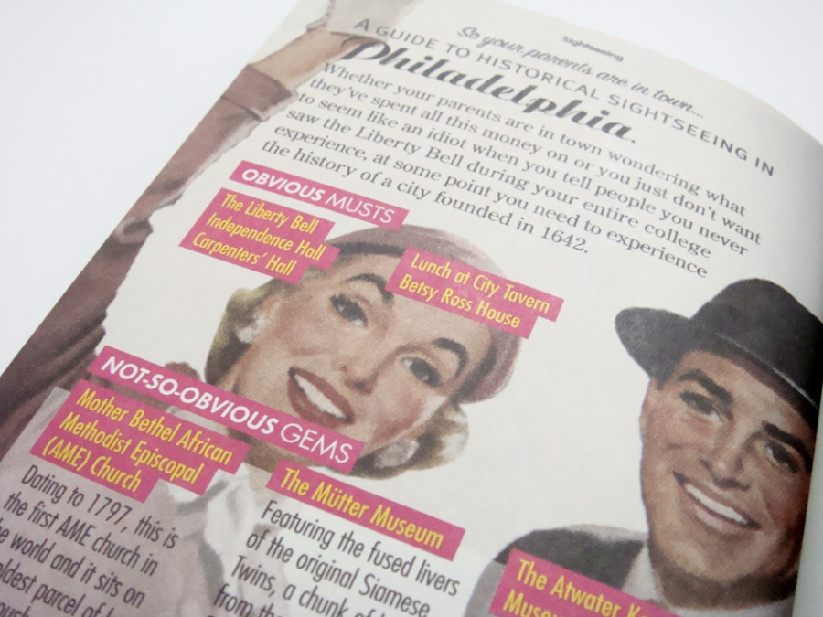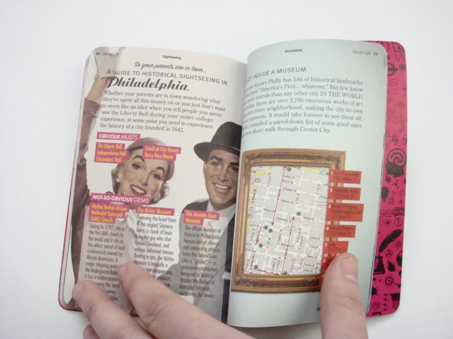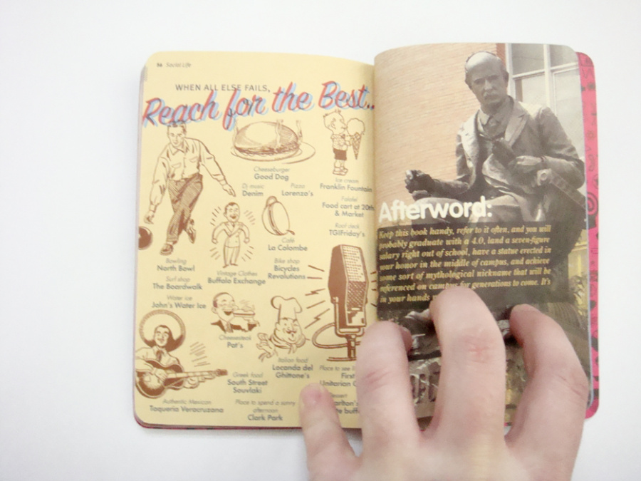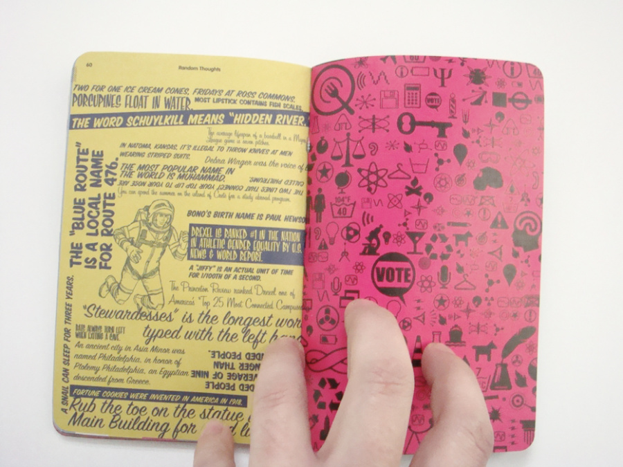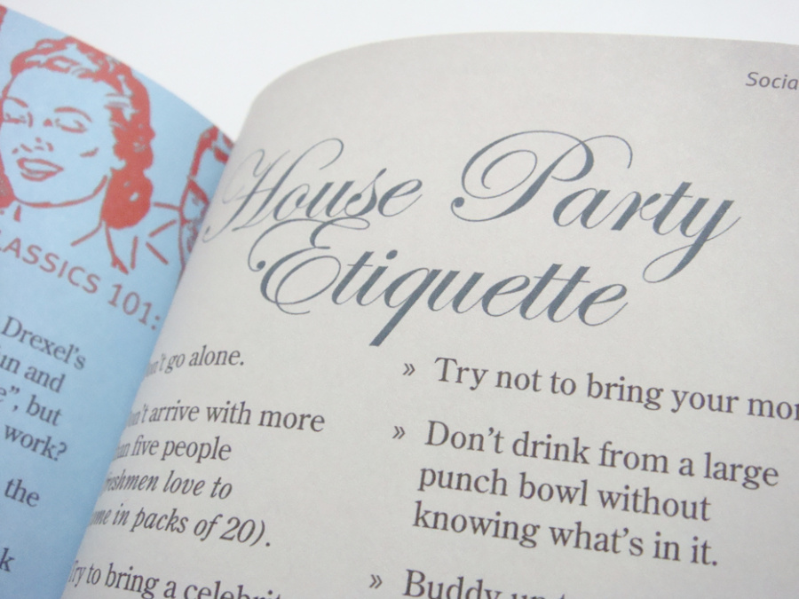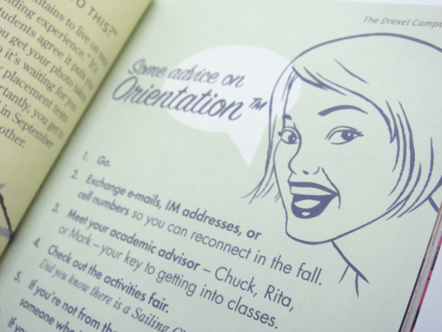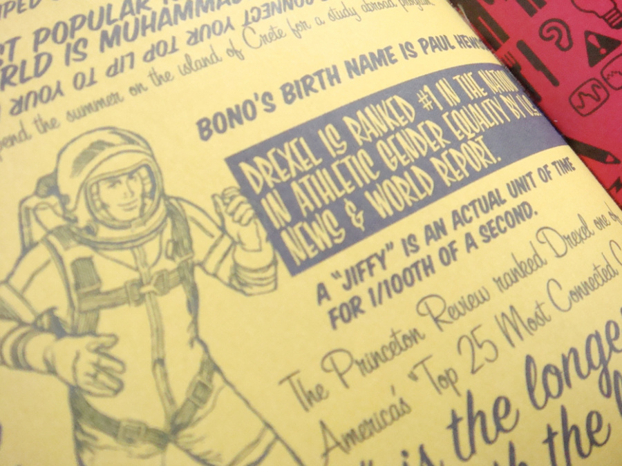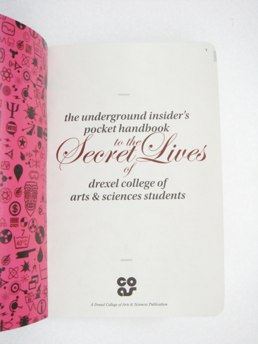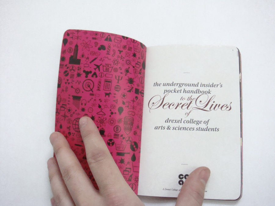We got to thinking, “If I knew then what I know now” can be solved with a very simple solution. Tell them now what we know now. Incoming freshman to Drexel’s College of Arts & Sciences (COAS) were given an underground guide to all things awesome on campus in and around Drexel University. To do this, myself along with copywriter Cory McCall had to endure tireless research living, drinking, and partying with the rather welcoming undergrads of this fine establishment. Rough life sometimes this design gig. Using a motif of campy, 50s instructional texts/videos, each page was designed to be instructional with a slight tongue-and-cheek way of navigating your first couple months on campus. The final product is literally pocket sized, and was packaged up with the acceptance letter.