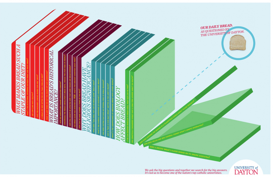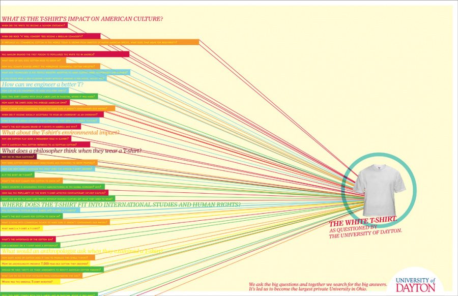 By the time the Flyers account rolled into the office, everyone was pretty intrenched with an academic client of some kind. Chestnut Hill. St. Joe’s. Drexel. Wilkes-Barre. You could kind of tell something interesting was going on here. Colleges were starting to notice, and word was spreading East. To be honest, I had trouble reconciling it, which was about the time I was having trouble reconciling everything in the ad world, but alas, that’s a story for another day. The lead on this project was given to Greg Ash. A fabulous designer with an amazing spirit that I unfortunately never got to spend much time with. The contract was huge. Collateral. Television spots! Radio. The largest to date (and a mere hour away from that OTHER Ohio school, the big one). I was asked to help out on a few pieces, and when the concept boards came across my desk I recall being absolutely blown away. You could tell there was an inherent shift in each college account. That slowly 160 was breaking down the norm and taking more risks with academia, but UDayton was off the charts. First off it was colorful. Visually stunning. Infographics and analytics up the wazoo. Pop culture references. Priests. Ohio. Somehow all parlayed into this perfect little milkshake for the up-and-coming media drenched generation. I loved it visually even though I struggled withed it’s messaging. Honestly, I think it was either ahead of it’s time or I was just burned out. Regardless, nearly 2 years after leaving the ad world, and flying into Ohio, the first thing to welcome me out of the gate, was a poster I had struggled with, oh so way back when. Foreshadowing. It’s a whacky bitch.