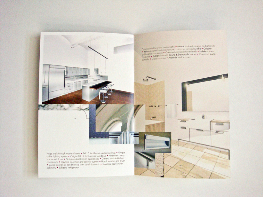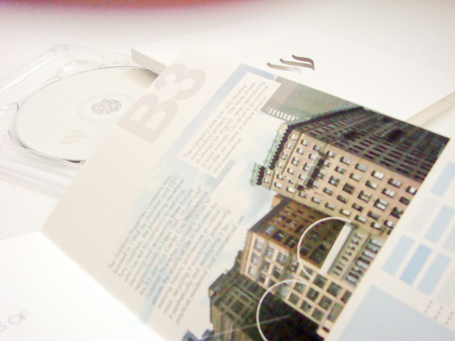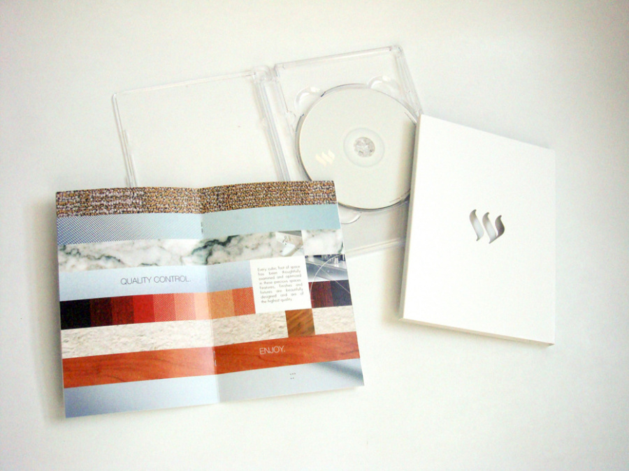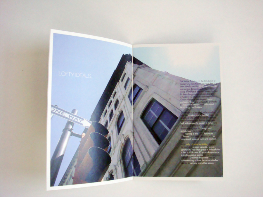 Developers love converting everything abandoned under the sun into lofts. Philly, is home to many, many…many…abandoned things. The S.S White in downtown Center City is probably one of these last sites. The history is what inspired the mark. The former name “S.S. White” was the base of the mark. The two S’s can be seen forming the W. Adopting “The White Building” as a moniker set a precedent to go with white on white, on white for the materials. The sell sheet, CD, and web site all used a proliferation of white space and clean lines.